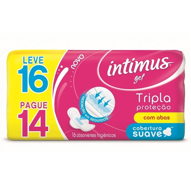 absorvente intimus gel tripla proteção suave, com abas, leve 16 e pague 14