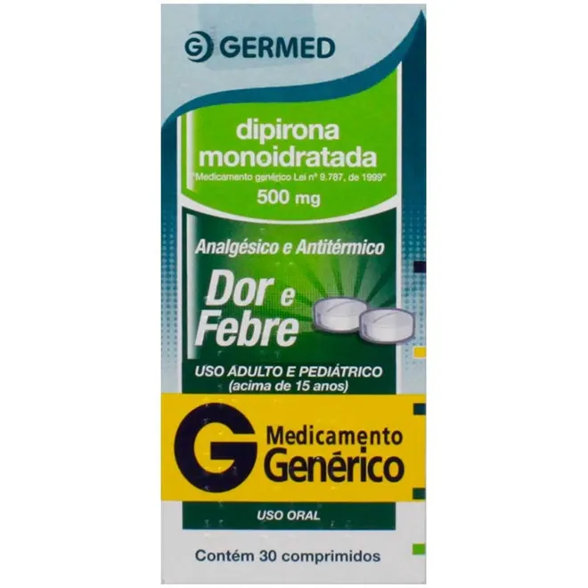dipirona monoidratada comprimido germed pharma 500mg, caixa com 30 comprimidos